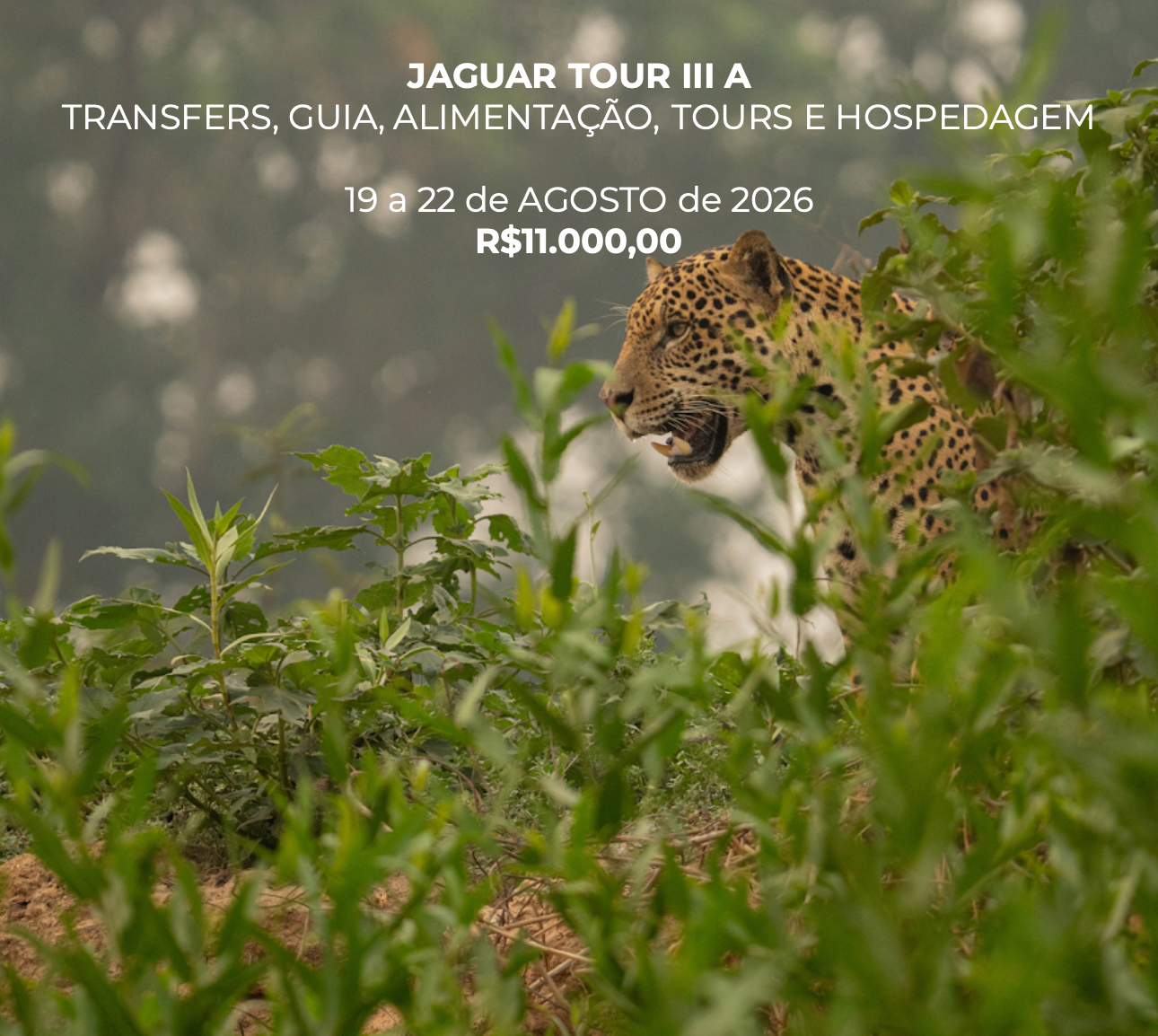 Serão dois dias repletos de aventuras e oportunidades fotográficas em um safári de barco privativo pelos rios do Parque Estadual Encontro das Águas. Estaremos em uma emocionante busca pelos animais mais impressionantes do parque. Além das majestosas onças-pintadas e das travessas capivaras, você verá vários jacarés e diversas aves fascinantes. Após desfrutarmos do almoço, continuaremos a exploração até o deslumbrante pôr do sol.